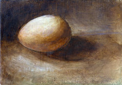 Used gesso to prime the surface, paying attention to the stroke direction. House paint evenly painted over top. Sponged on watered-down gesso and dark watercolor for texture around corners.